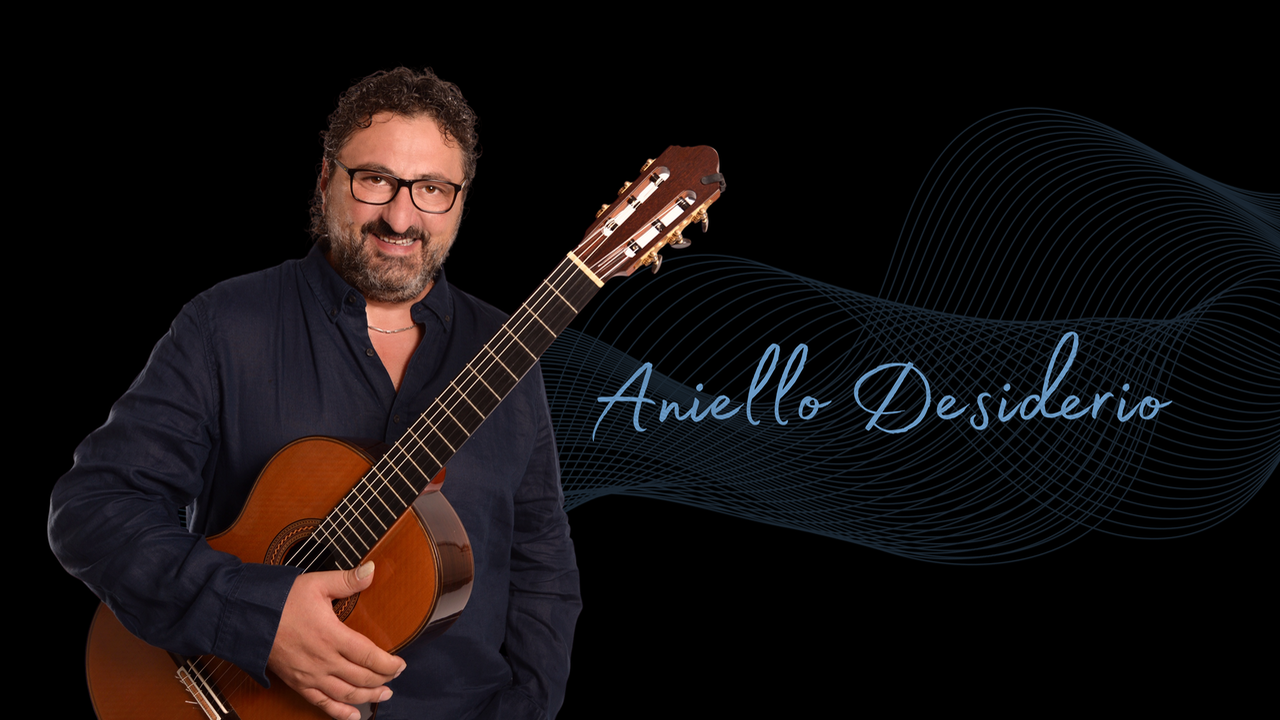 Aniello Desiderio is professor aan de S. Giacomantonio Muziekuniversiteit in Cosenza, Italië. Hij staat bekend om zijn complexe toets, snelheid en precisie op het instrument, waarmee hij "acrobatische arpeggio's en toonladders van buitengewone briljantie" speelt, wat tot vergelijkingen met Paganini heeft geleid. Hij is vooral bekend om zijn interpretaties van werken van Paganini, Scarlatti, Carulli en minder bekende Italiaanse componisten op wereldschaal.